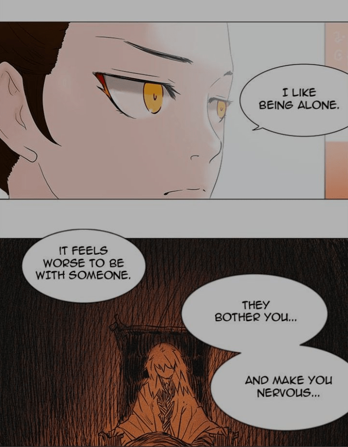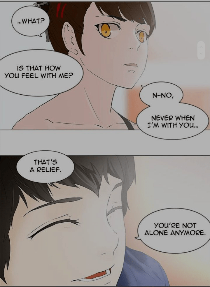To move away is also to move towards. In recognizing that it is not good to be alone, we know what it is we should be looking for: building community with others. Big surprise, a recurring theme in Tower of God is whether it’s better to dominate others or work together with others to obtain your goal.