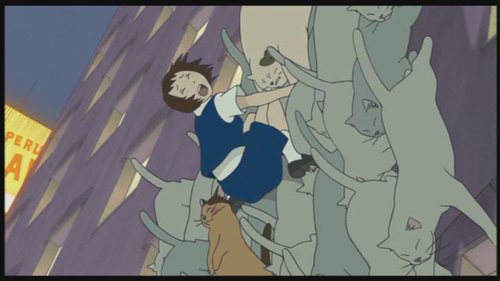 In a last-ditch effort, the cat king is crazy enough to destroy the tower leaving the portal sitting in the sky unreachable. The goal is in sight but seemingly unobtainable. Even when Haru miraculously reaches the portal and comes back into the human world she’s floating in the middle of the sky! What seemed to offer her a way back now seems to only offer death! She falls and prepares for the worse, but the Baron and Muta also made it through the portal and they tell her to look down, in other words: face her fear, confront the thing the seems to only be certain death. It is then that we see Toto (the crow from before) – who didn’t make it into the cat kingdom, but waited for Haru to return. He has brought his friends with him too and they swarm the three falling friends gently letting Haru come back to earth. If she had not looked down, she would not have been caught by the friends that awaited her on the other side.